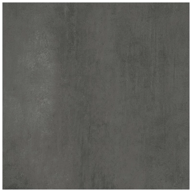 Płytka Grava Graphite to typowy przedstawiciel betonowej estetyki - powierzchnia ma matową, jednolitą fakturę z wyraźnym efektem surowego betonu. Szarość jest głęboka, ale nie monotonna, z drobnymi niuansami, które nadają jej wizualną głębię. Ten antypoślizgowy gres imitujący beton podłogowy dobrze wpisuje się w nowoczesne przestrzenie, które potrzebują chłodnego, technicznego tonu, bez zbędnych ozdobników.