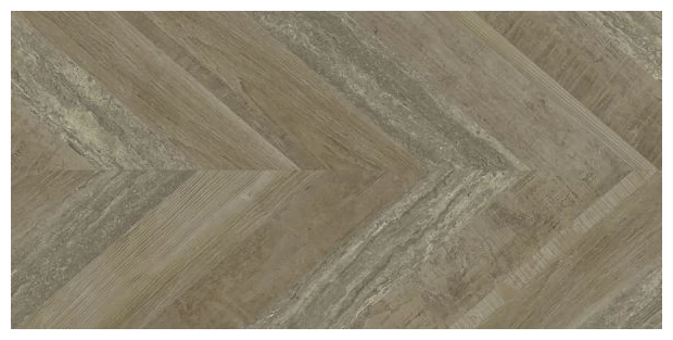 Produkt wyróżnia się wzorem imitującym układ drewna, w stylu chevron. Płytka ma matową powierzchnię, co oznacza, że nie odbija światła i nie jest śliska wizualnie. Kolory utrzymane są w naturalnych, stonowanych tonacjach brązów i szarości, co przekłada się na efekt surowego drewna. Takie wykończenie sprawia, że podłoga wygląda estetycznie, a zamiast połysku otrzymujemy nutę naturalności. Wzór jest precyzyjny, a rektyfikacja krawędzi pozwala ułożyć płytki niemal bez fug, co wpływa na spójny, nowoczesny charakter podłogi.