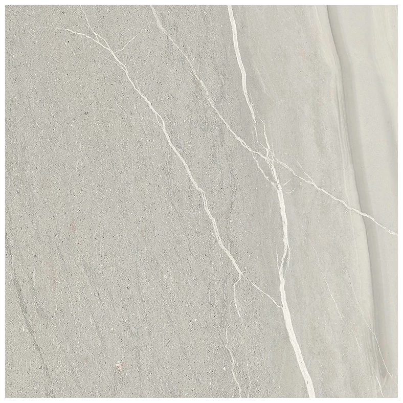 Lake Stone marki Opoczno prezentuje gres podłogowy, który stawia na naturalny, kamienny wygląd. Jego szare tło z delikatnymi, jasnymi żyłkami tworzy subtelną, ale wyraźną powierzchnię o nieregularnym wzorze. To nie jest płaska, monotonna płytka - raczej wielowymiarowa struktura, która przyciąga uwagę bez nachalności.