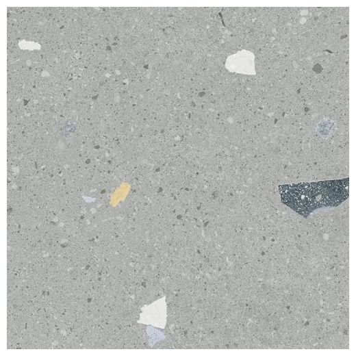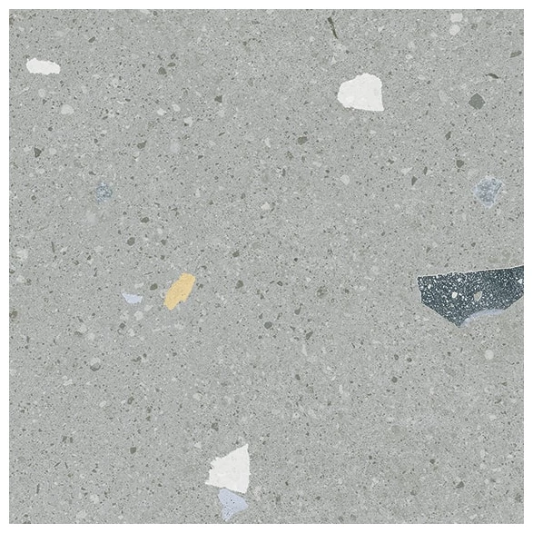 Płytka Croccante Arandano gres 20x20 z kolekcji Croccante od producenta Arcana prezentuje wyraźny wzór lastryko. Szary, matowy odcień z nieregularnymi inkluzjami w różnych barwach tworzy definitywnie nowoczesny, ale zarazem stonowany efekt. Na powierzchni zobaczysz nieregularne, kamienne elementy w odcieniach bieli, czerni, żółci i błękitu, które nadają jej strukturę i głębię. To dosyć charakterystyczny wzór, nie jest monotonny, ale też nie nachalny.