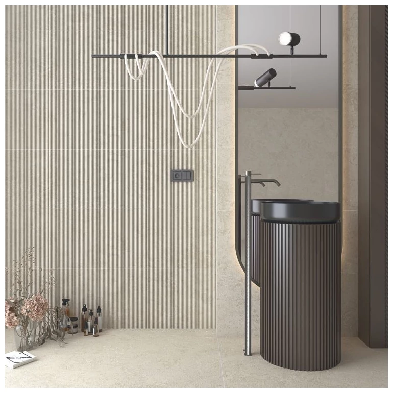 - W łazience: matowa powierzchnia i antypoślizgowość R10 zapewniają bezpieczeństwo i wygodę.