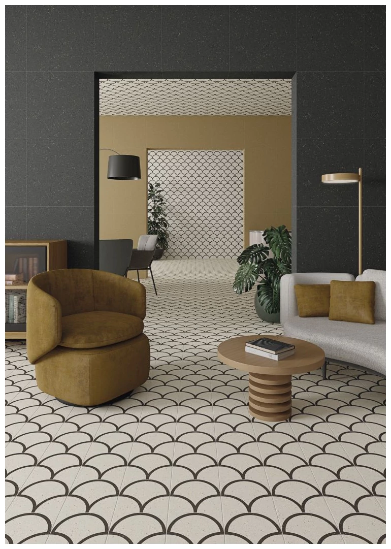 Wzór jest wyraźny, ale nie krzykliwy, co pozwala na spójne komponowanie z różnorodnymi stylami aranżacji wnętrz. Małe formaty płytki pozwalają na ciekawe układy i wzory podłogowe, a naturalne odcienie i tekstura lastryko ułatwiają ukrycie drobnych zabrudzeń lub śladów codziennego użytkowania.