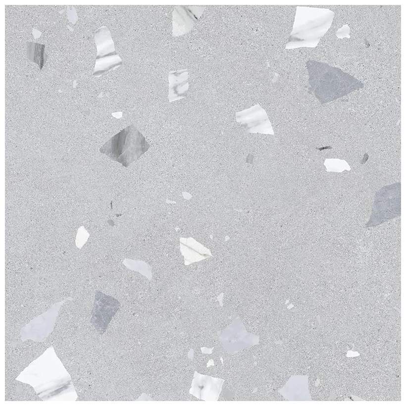 Płytka Ribe-R Gris z kolekcji Elburg firmy Arcana prezentuje charakterystyczny wzór lastryko, który wyróżnia ją spośród innych gresów podłogowych. Szara, matowa powierzchnia miesza się tutaj z różnorodnymi płatami w odcieniach szarości i bieli, tworząc układ niejednolity, lecz harmonijny. Wzór jest duży i zróżnicowany, co powoduje, że każda płytka jest trochę inna, a całość ma ciekawy, surowy charakter. Wielkoformatowe rozmiary 80x80 cm dobrze eksponują ten wzór, pozwalając na eleganckie i jednocześnie naturalne wykończenie posadzki.