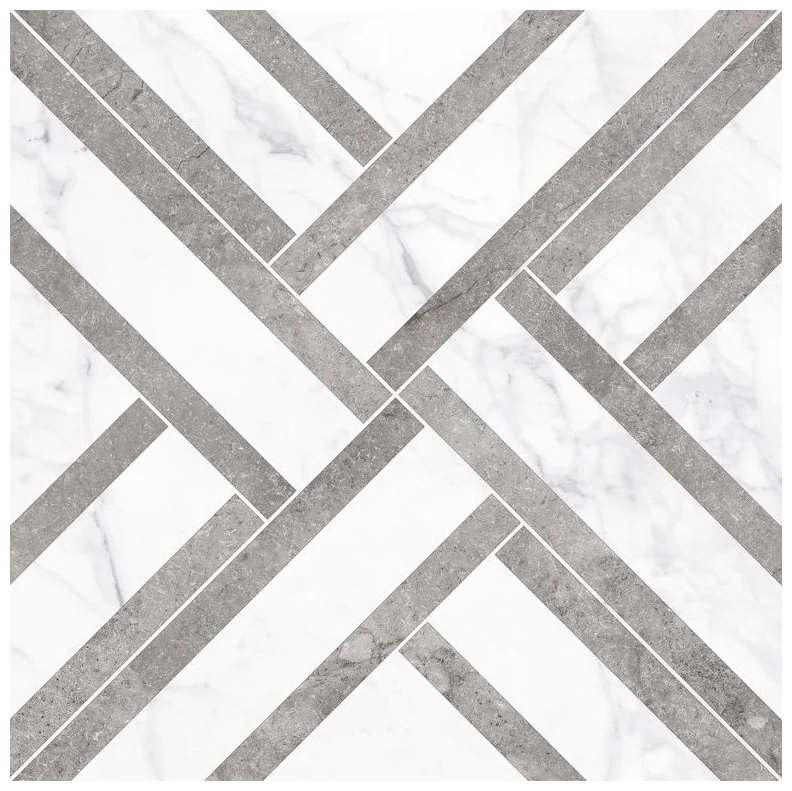 Majestic Diagonal Natural to wielkoformatowa płytka 59,55x59,55 z kolekcji Majestic od producenta Aparici. Powierzchnia imituje marmur, z jasnym, marmurowym tłem przeciętym skośnymi, szarymi pasami tworzącymi geometryczny, diagonalny wzór. Wykończenie jest matowe, co podkreśla surowy, nowoczesny charakter wzoru.