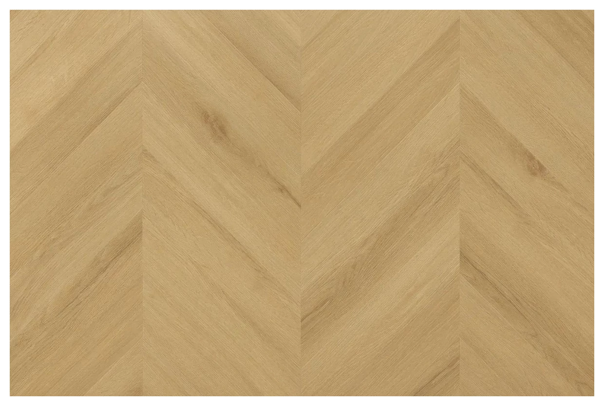 Amaron Chevron Dab Virgin to panel winylowy z kolekcji Amaron Chevron od producenta Arbiton. Na pierwszy rzut oka widoczny jest jasny, naturalny ton drewna i charakterystyczny wzór jodełki, który nadaje podłodze wyraźną geometrię i porządek. Struktura powierzchni pokazuje delikatne usłojenie, nie ma tu silnych kontrastów, raczej stonowane przejścia barw.