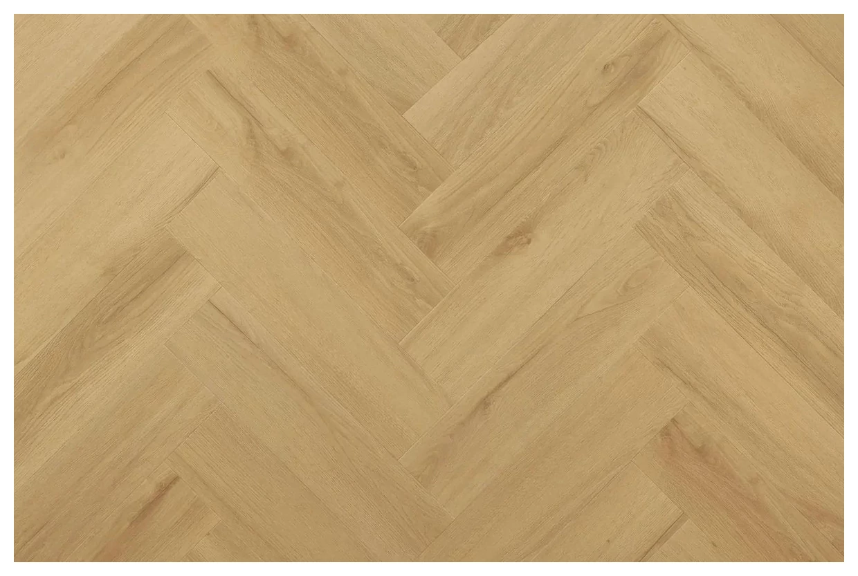 Amaron Herringbone EIR Acoustic Dąb Virgin to panel winylowy z kolekcji Arbiton, przedstawiony w formacie 14,8x59,2. Wyraźna jodełka nadaje ułożeniu uporządkowany rytm podłodze, a naturalny, jasny odcień dębu widoczny na powierzchni dobrze współgra z nowoczesnym i skandynawskim wnętrzem. Struktura powierzchni odwzorowuje rysunek drewna, z delikatnymi słojami i drobnymi, niejednolitymi przebarwieniami, które wprowadzają subtelny kontrast bez przesadnej dekoracyjności.