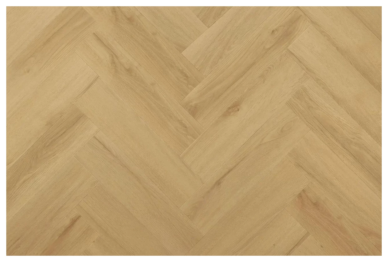Jasny odcień Dąb Virgin pokazany na panelach prezentuje naturalny rysunek drewna, z drobnymi sękami i stonowanymi słojami. Struktura EIR w wierny sposób podkreśla przebieg włókien i nadaje powierzchni fakturę, która jest wyczuwalna pod stopami. Układ jodełki zmienia standardowy układ w sposób zdecydowany - tworzy rytm i kierunek w pomieszczeniu, który przykuwa uwagę, ale nie dominuje.