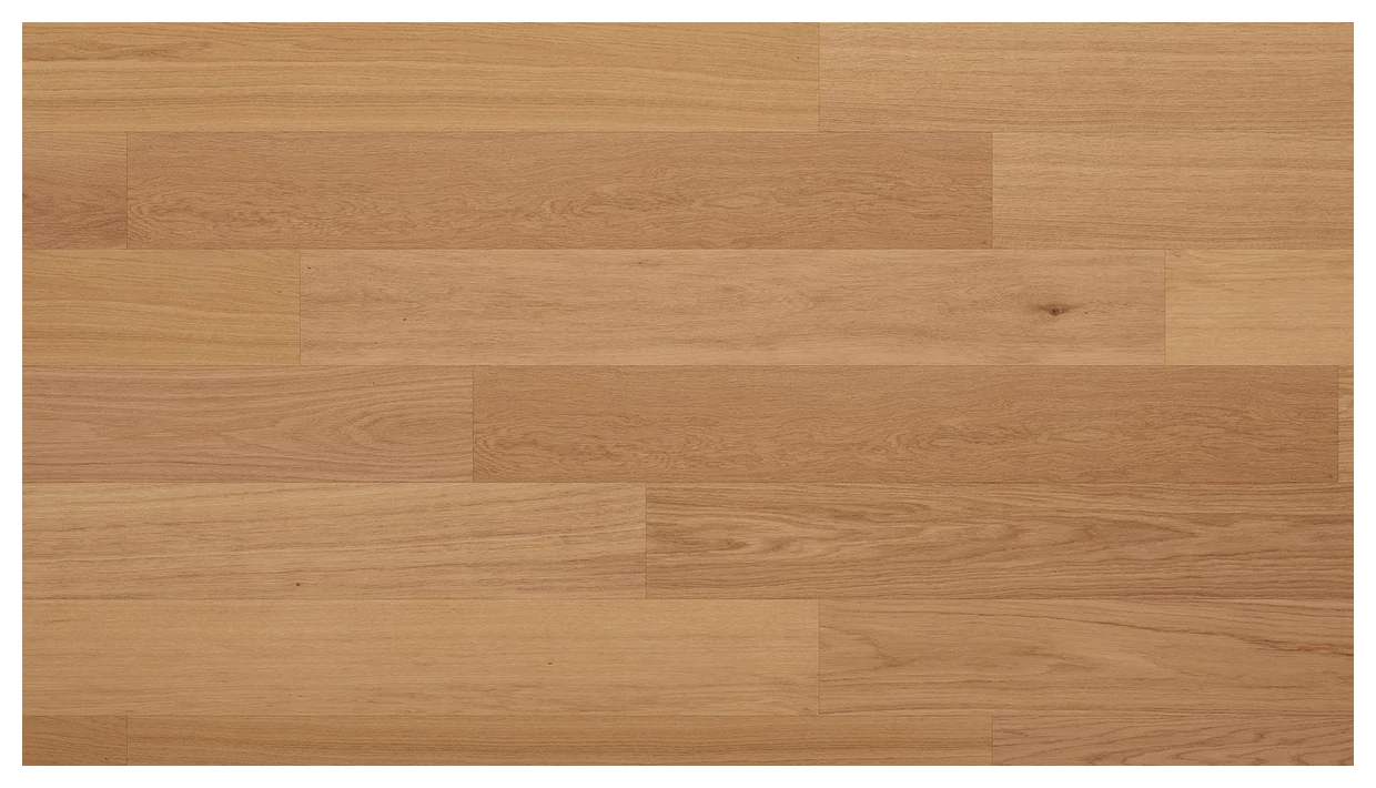 Dab Essenza to deski o jasnym, naturalnym odcieniu dębu. Widoczna struktura słojów i subtelne, niewielkie sęki tworzą spójny, spokojny wzór. Kolorystyka przesuwa się od jasnych beżowo-miodowych tonów do nieco głębszych, cieplejszych pasm - w praktyce daje to efekt neutralnej, ale wyrazistej powierzchni podłogi.