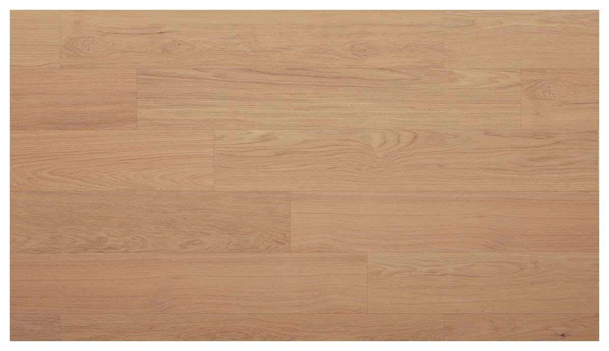 Dab Evana to jasna podłoga hybrydowa o spokojnym, dębowym wybarwieniu. Widoczny rysunek słoi jest dyskretny - przeważają delikatne pasma drewna i nieliczne, stonowane sęki. Powierzchnia zachowuje naturalny wygląd deski, bez silnego połysku, efekt jest estetyczny i uniwersalny.