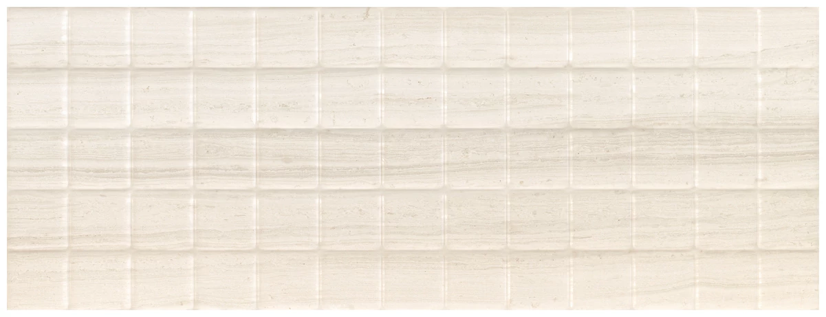 Marbox Travertine Square to płytka ścienna, która wyróżnia się swoją spokojną, beżową kolorystyką. Ten odcień dobrze wpisuje się w koncepcję wnętrz o stylu śródziemnomorskim, w których ceni się naturalne i ciepłe barwy. Powierzchnia ma efekt trawertynu - delikatnie zarysowane, nieregularne wzory imitujące naturalny kamień, które dodają jej nieco surowości i autentyczności.