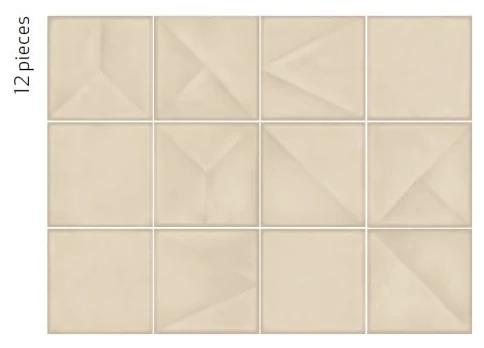 Matowa, strukturalna powierzchnia powoduje, że nie odbija światła w sposób intensywny, co pozwala uniknąć efektów utrudniających odbiór przestrzeni i minimalizuje widoczność zabrudzeń. Geometryczny wzór to rozwiązanie dyskretne, jednak z wyraźnym akcentem dekoracyjnym, dzięki czemu płytka nie traci praktycznego charakteru, lecz wzbogaca ścianę o uporządkowane detale.