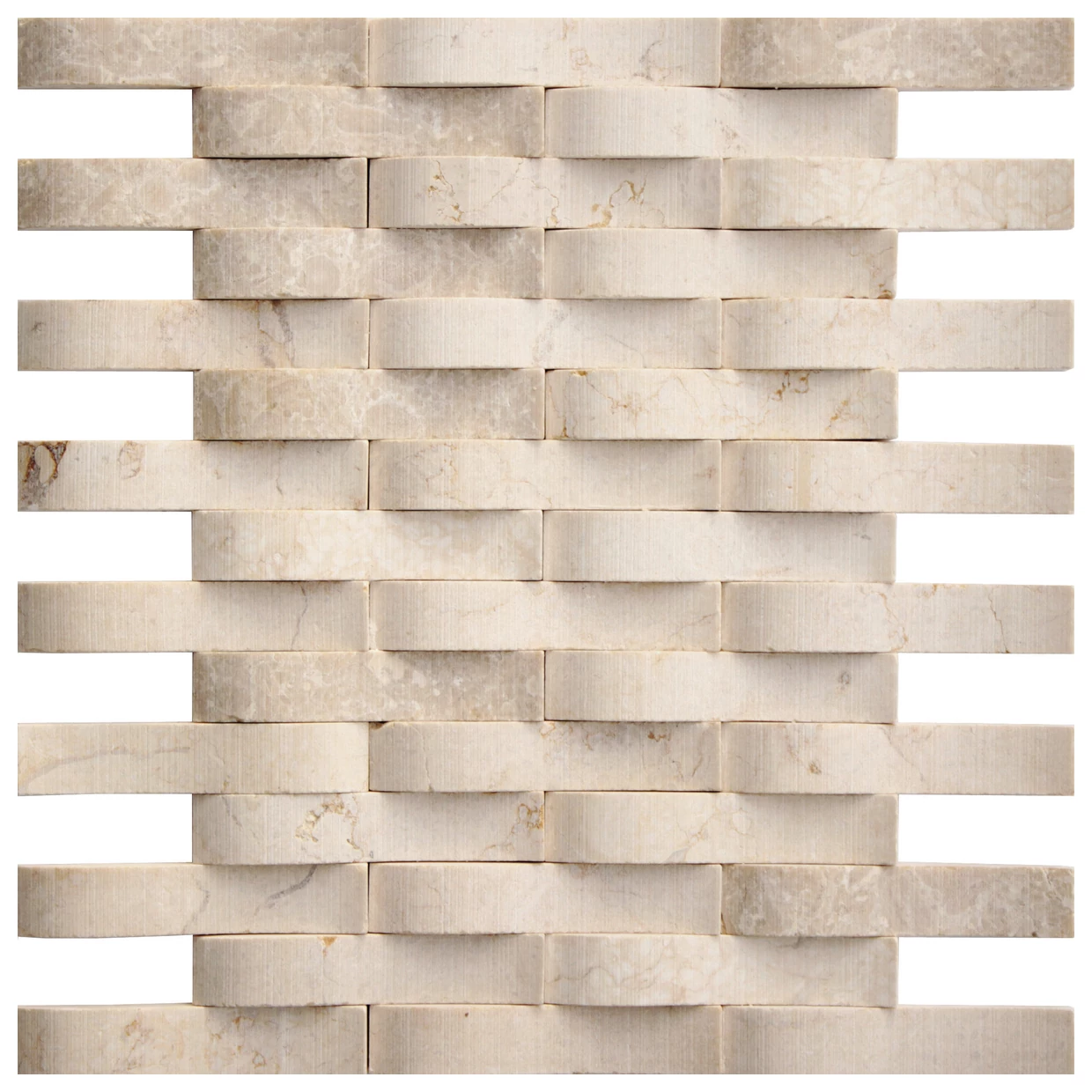 Wielkość elementów jest relatywnie duża w porównaniu do standardowych mozaik, co może wpływać na szybkość montażu oraz odbiór wizualny - przestrzeń wygląda bardziej spójnie i solidnie. beżowa barwa jest neutralna, przez co mozaika wpisze się zarówno w modernistyczne, jak i klasyczne aranżacje.