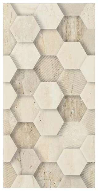 Sunlight Stone Beige Geometryk charakteryzuje się strukturą wyraźnie zaakcentowaną na powierzchni - to płytka strukturalna. Jej heksagonalny kształt pozwala na efektowne kompozycje przestrzenne, w których każdy element gra swoją rolę w budowaniu całości. Dzięki temu można osiągnąć efekt bardziej dynamiczny niż przy tradycyjnych prostokątnych płytkach.