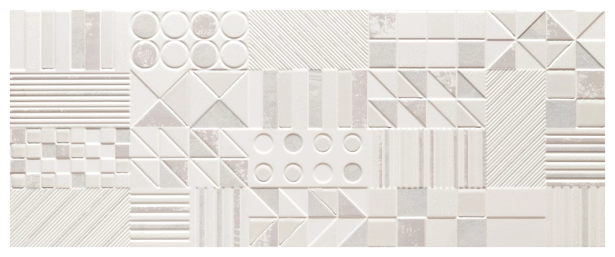 Modern Basalt A dekor 29,8x74,8 to kafel o powierzchni lappato, co oznacza, że ma delikatny, minimalnie błyszczący szlif - nie jest ani całkiem matowy, ani całkiem błyszczący. Wzór na płytce to precyzyjna kompozycja geometrycznych kształtów, które układają się w ciekawy układ prostych linii, kół i trójkątów. Każdy element ma inny charakter, co pozwala uzyskać ciekawy efekt wizualny, nie monotonną powierzchnię, lecz pełną detali i przełamań. Kolor beżowy łączy zróżnicowane wzory w spójną całość, nadając jej ciepły, ale neutralny charakter. To coś dla tych, którzy cenią nietypowe zestawienie form i faktur bez krzykliwych barw.