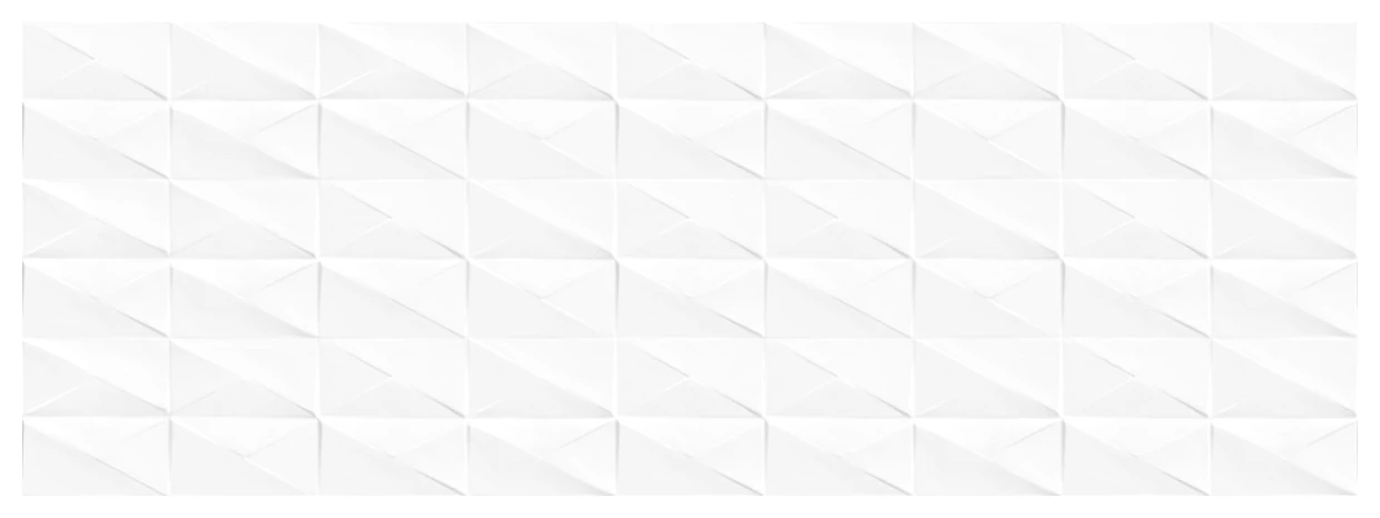 Biała glazura hiszpańska Cotton Fold to propozycja o wymiarach 33,3x100 cm, która przykuwa uwagę głębokim trójwymiarowym wzorem. Powierzchnia matowa powoduje, że płytki nie odbijają światła przesadnie, co pozwala na uzyskanie efektu zrównoważonej przestrzeni bez nadmiernego połysku. Wzór na płytce to regularnie powtarzające się geometryczne kształty o prostych krawędziach, które nadają ścianie wyrazistości i konkretnej formy.