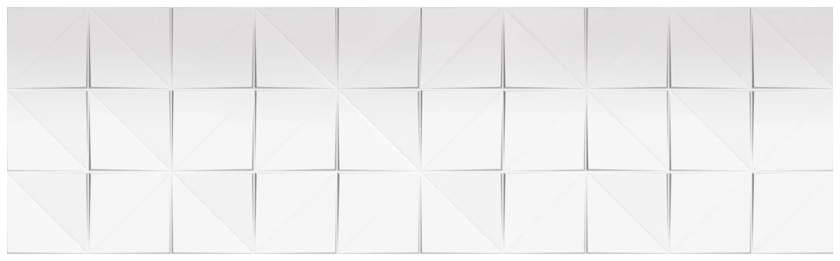 Glimpse White BOX to płytka ścienna, która od razu wyróżnia się oryginalnym wzorem. Ustawione pod różnym kątem trójkąty, dzięki matowej, strukturalnej powierzchni, tworzą interesującą grę światłocieni. To nie jest zwykła biała glazura w stylu glamour - tu struktura daje efekt głębi i ruchu na ścianie, co przyciąga wzrok, ale nie narzuca się przesadą. Płytka ma kształt prostokąta o wymiarach 29,75 na 99,55 cm, co pozwala na kompozycje, które podkreślą przestrzeń bez efektu przesytu.