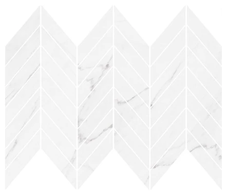 Marinel White Chevron Glossy Mosaic to biała mozaika jodełka francuska, która wyróżnia się subtelnym wzorem ułożonym w charakterystyczny układ jodełki. Ułożenie płytek sprawia, że każda powierzchnia zyskuje nieoczywisty rytm i strukturalną dynamikę. Połączenie jasnej bieli z delikatnymi, kamiennymi żyłkami nadaje produktowi wyrazisty, ale jednocześnie stonowany wygląd. Powierzchnia jest błyszcząca, co podkreśla detale i sprawia, że mozaika ładnie odbija światło.