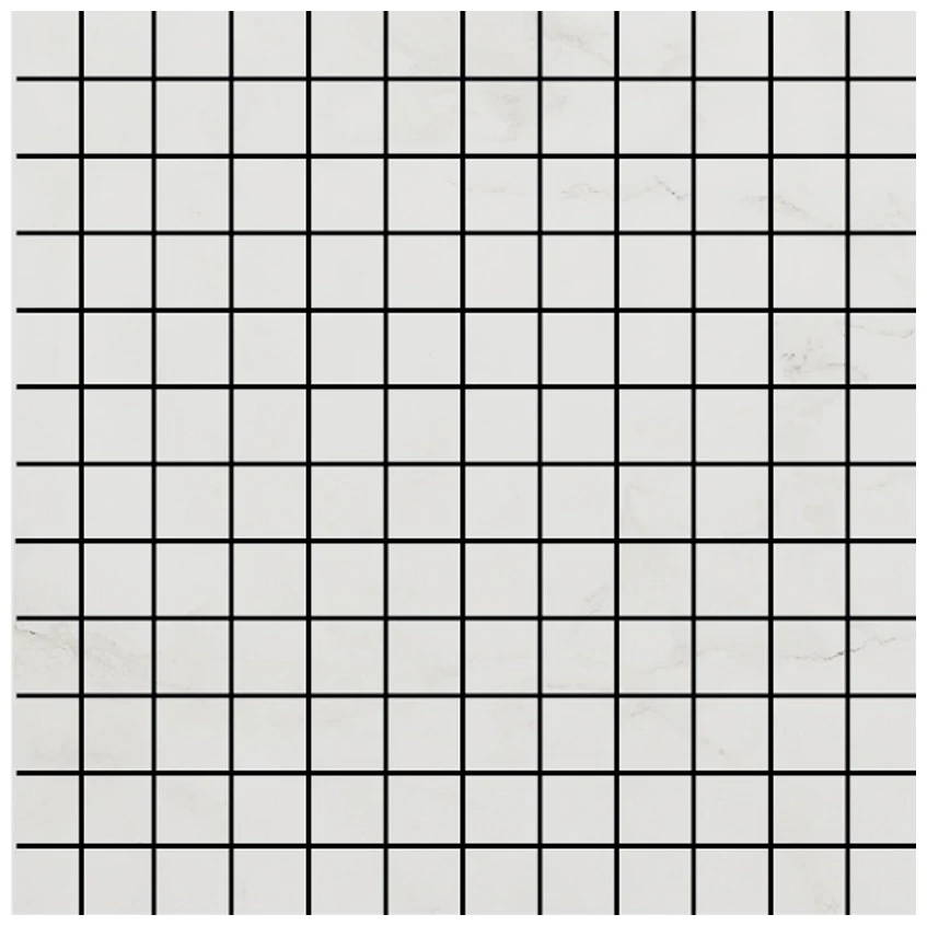 Imarble Carrara 2,5x2,5 to mozaika dekoracyjna o wymiarach 29,75x29,75 cm, która prezentuje się jako biała mozaika w stylu rustykalnym. Każdy kafelek ma format 2,5x2,5 cm, co pozwala na uzyskanie wyrazistej siatki i harmonijnego układu. Powierzchnia została wykończona z efektem kamienia, dzięki czemu można dostrzec naturalne żyłkowanie i delikatne, nieregularne wzory, charakterystyczne dla marmuru carrara.