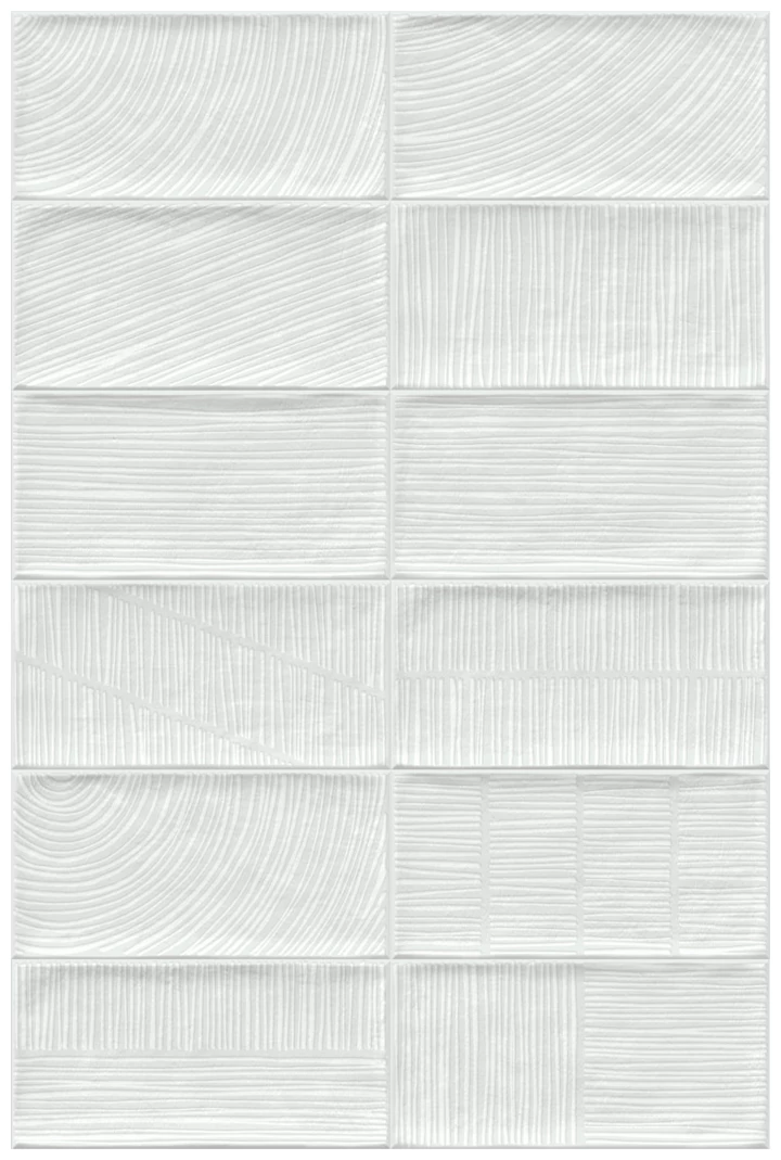 Viet Blanco dekor 10x20 to niewielka płyta ceramiczna o wymiarze 10x20 cm, której powierzchnia błyszczy delikatnym połyskiem. Jej biały kolor dominuje z subtelnym, naturalnym zróżnicowaniem odcienia, co tworzy ciekawy efekt wizualny. Faktura płytki jest strukturalna - na powierzchni znajdują się różne wzory linii, tworzące geometryczne i nieregularne układy. Każdy z elementów ma nieco inny układ prążków i nacięć, przypominający drobne, rustykalne zdobienia. Ta nierówna struktura dodaje płytce wyrazistości i podnosi jej dekoracyjny charakter.