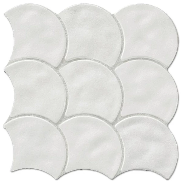 Scale White gres o wymiarze 30,7x30,7 cm to produkt wyróżniający się nietypowym kształtem kafli - układ tworzy mozaikowy wzór z zaokrąglonymi elementami, które nadają powierzchni subtelną dynamikę w aranżacji. Jego matowa, biała powierzchnia prowadzi do efektu nieoczywistej elegancji, która nie przytłacza przestrzeni, lecz dodaje jej lekkości. Dzięki temu nie jest to typowa, gładka płytka, a coś, co może zaskoczyć swym detalem nawet na pierwszy rzut oka.