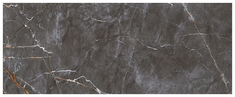 Produkt wyróżnia się powierzchnią o wysokim połysku, który nadaje mu wyraźny, lśniący efekt. Płytka ścienna przypomina naturalny kamień, ale z bardziej wyraźnymi żyłkami w różnych odcieniach bieli i delikatnych elementach pomarańczowo-brązowych. Taki wzór sprawia, że powierzchnia nie jest monotonna i przyciąga wzrok. Kolorystyka utrzymana została w ciemnych tonach szarości i czerni, co daje możliwość zastosowania jej w nowoczesnych i surowych wnętrzach.