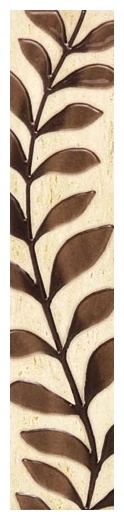 Listwa Toscana 2 o wymiarach 7,4x36 cm prezentuje się jako detal, który może naprawdę odmienić przestrzeń. Na jasnym tle widoczne są ciemniejsze, błyszczące liście ułożone w regularny wzór. Ten kontrast sprawia, że powierzchnia listwy przyciąga wzrok i nie jest monotonna, a jednak pozostaje na tyle stonowana, by nie zdominować całego pomieszczenia. Błyszcząca struktura dodatkowo podkreśla kształty, nadając elementowi lekkości i wyrazistości.