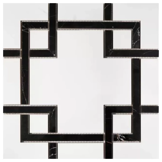 Astona Carrara GP mozaika 30x30 z kolekcji Lordy, produkowana przez firmę Dunin, przykuwa uwagę wyrazistym wzorem geometrycznym. Powierzchnia płytek ma wysoki połysk, który podkreśla kontrast pomiędzy czernią a bielą, nadając całości nowoczesny, ale jednocześnie elegancki charakter. Każdy element jest duży, co czyni mozaikę wyrazistą, nie zatłoczoną - układ geometryczny jest czytelny i zdecydowany, co nie każdemu się od razu kojarzy z mozaiką.