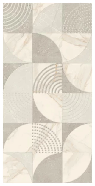 Hope Grey dekor 30x60 to błyszcząca płytka dekoracyjna z motywem geometrycznym, która przykuwa uwagę naturalną harmonią i uporządkowaniem form. Wzór to zestawienie półokręgów, łuków i punktów, które łączą się w spójny, choć niejednorodny układ. Jasna, stonowana kolorystyka w odcieniach szarości oraz kremowego różni się fakturą matowej powierzchni kamienia i delikatnymi połyskami, nadając produktowi wielowymiarowości. Nie jest to typowa płytka z agresywnym wzorem, raczej spokojna, ale wyraźnie nowoczesna dekoracja.