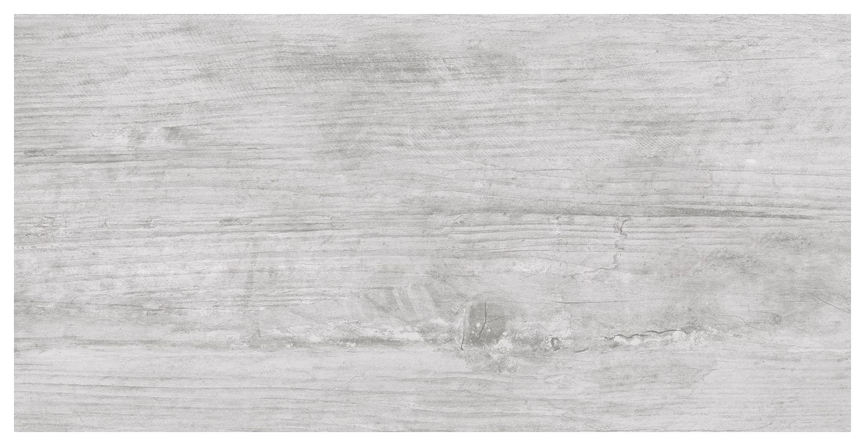 MAX Wood Grey to płytka ścienna o wymiarze 30,0 x 60,0 cm. Widoczny jest wyraźny motyw drewna w odcieniach szarości - słoje i delikatne sęki tworzą uporządkowaną, surową fakturę. Powierzchnia jest błyszcząca, co wpływa na sposób odbioru koloru i podkreśla strukturalne detale.