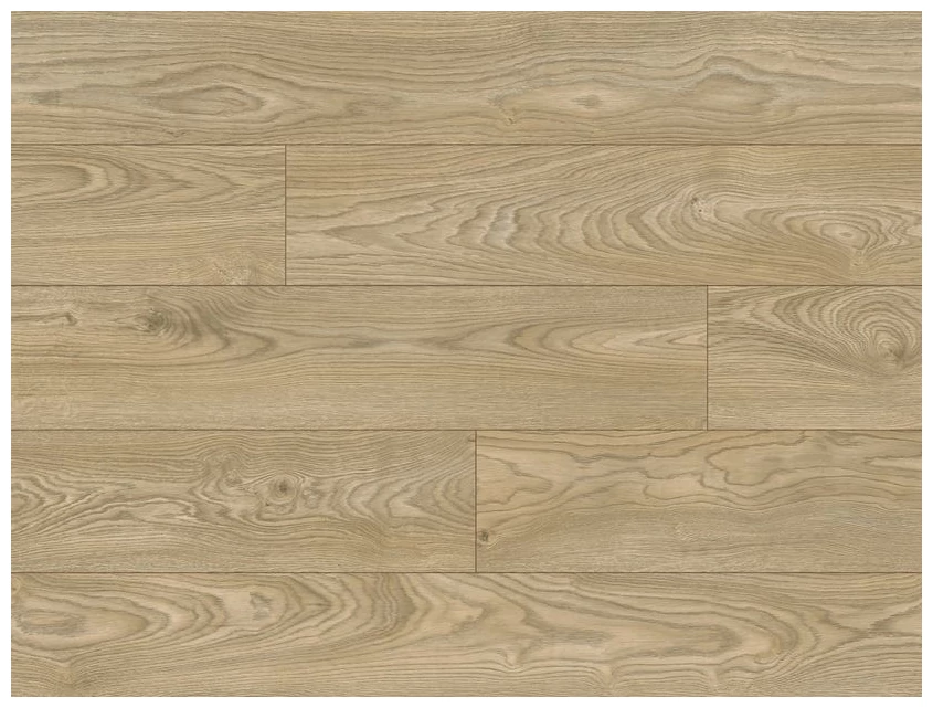 Kolorystyka oscyluje wokół neutralnych beży z chłodnym podtonem, dzięki temu podłoga łatwo harmonizuje z różnymi stylami wnętrz - od nowoczesnych po skandynawskie. Widoczne detale struktury powierzchni sugerują, że materiał dobrze odwzorowuje naturalne usłojenie, bez przesadnych ozdobników.