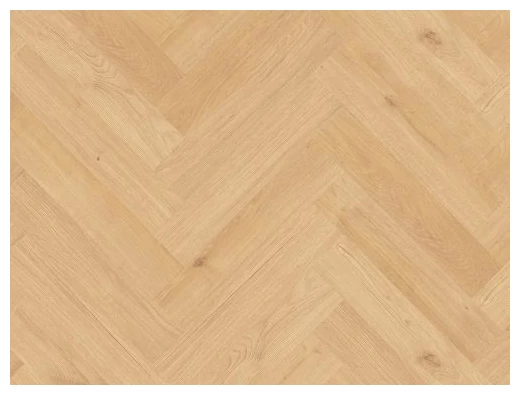 Panel o oznaczeniu Manor+ Chambord 63978 prezentuje jasny, naturalny odcień dębu ułożony w klasyczną jodełkę. Wzór jest czytelny, z delikatnymi słojami i sporadycznymi sękami, które nadają podłodze autentyczny, uporządkowany wygląd. Jodełkowy układ nadaje pomieszczeniu rytm, nie jest krzykliwy, raczej porządkuje przestrzeń i kieruje wzrok.
