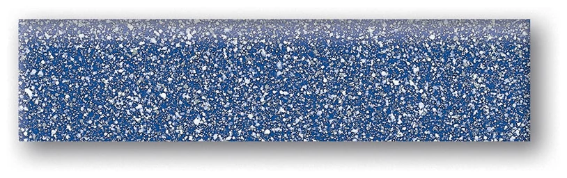 Wzór oraz kolorystyka tego gresu cokolowego z kolekcji Tartan zwracają uwagę ze względu na silny kontrast oraz bogactwo punktów na powierzchni. Dominujący odcień to intensywny niebieski, urozmaicony gęsto rozmieszczonymi białymi i jasnoszarymi drobinkami. Matowa powierzchnia sprawia, że cokol nie odbija światła, co nadaje mu bardziej stonowany i praktyczny charakter. Widać wyraźnie teksturę, która jest nie tylko estetyczna, ale też funkcjonalna.