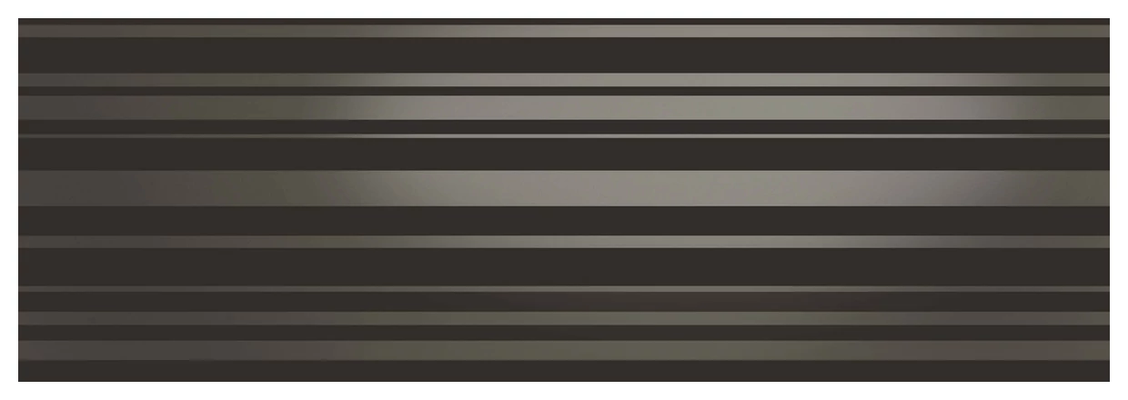 Wzór płytki nie jest monotonny - różne szerokości pasów dodają jej głębi, a regularność formy stawia ją gdzieś pomiędzy porządkiem a lekkim nieładem. To czarny element dekoracyjny mogący stać się mocnym akcentem w przestrzeniach wymagających wyrazistego finishu, bez zbędnej ozdobności.