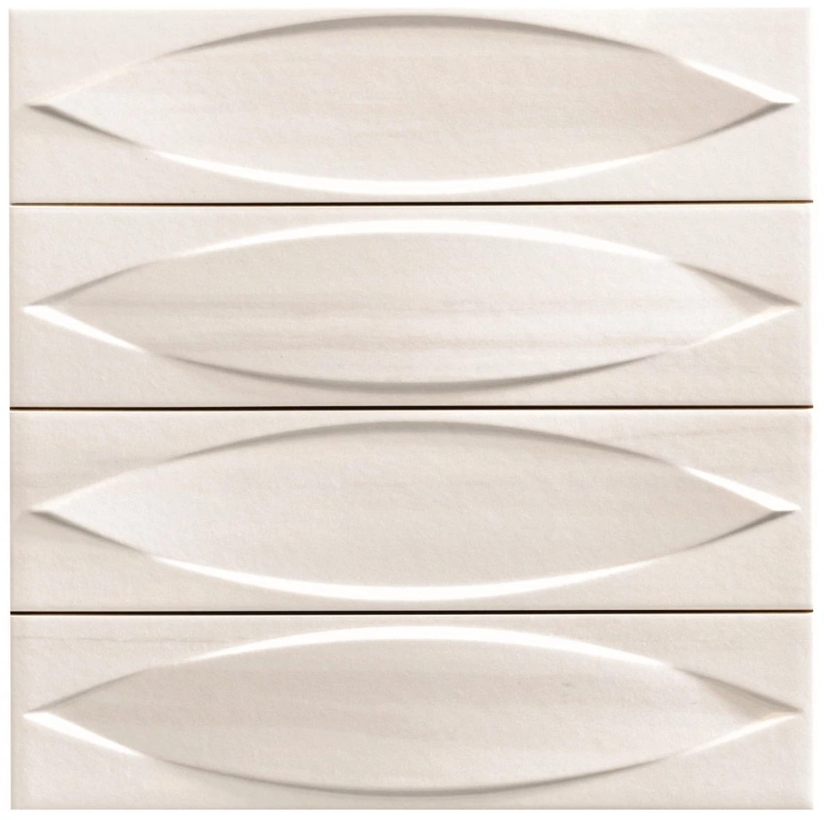 Lekko zaokrąglone, wydłużone kształty na płytkach Lens Dolomite wprowadzają wyraźną strukturę na ścianę. Powierzchnia jest matowa, dzięki czemu płytki unikają nadmiernych refleksów światła, a wzór pozostaje czytelny i estetyczny nawet przy zmiennym oświetleniu. Ta duża glazura hiszpańska oferuje minimalistyczny design, który jednocześnie nie jest nudny - detale zostały wyraźnie wyeksponowane reliefem.