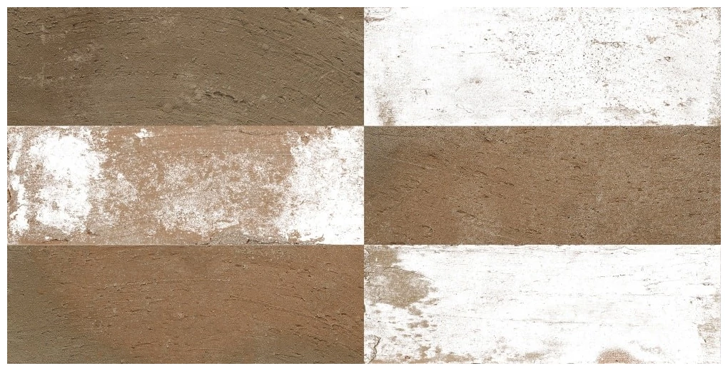FS MUD Cocoa to płytka ścienna o wymiarach 20x40 cm, która zdecydowanie zwraca uwagę swoją matową powierzchnią i nietuzinkowym wzorem. Dominują tutaj nieregularne pasy w odcieniach brązów z elementami bieli, co daje mieszankę surowości i naturalności typowej dla materiałów z kolekcji FS Mud. Ta duża glazura hiszpańska łączy ciepłe, ziemiste barwy z lekko postarzaną fakturą, co można zauważyć na każdej powierzchni płytki - jej wygląd nie jest banalny ani jednorodny.