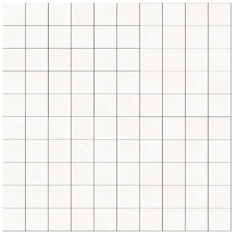 Salines White mozaika 30x30 (23321) to prostokątne kafelki o wyraźnym, miło matowym wykończeniu. Ich rozmieszczenie w formie dużych, równych kwadratów tworzy uporządkowany wzór, który nie narzuca się przesadną finezją.
