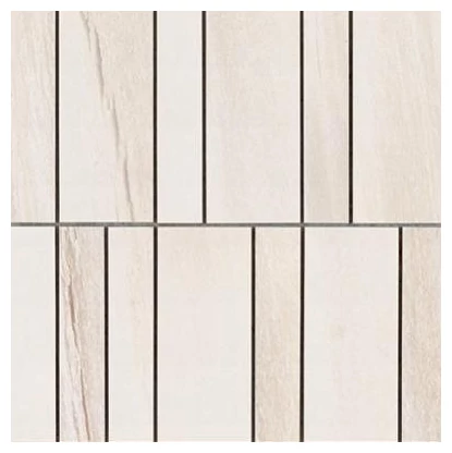 Wzory są minimalistyczne, zróżnicowane kształtami. Płytki różnej długości ustawione w prostą siatkę tworzą klarowny rytm i porządek. To mozaika dla osób, które chcą uzyskać wyważony, uporządkowany wizualnie efekt bez zbędnego zdobnictwa, stawiając na elegancję i przestrzenność.