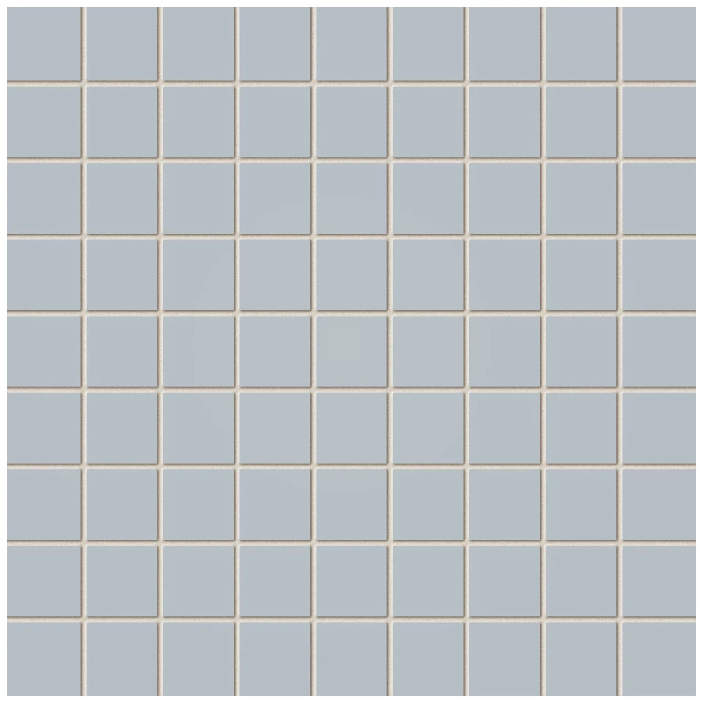 Wielkość każdego kwadratu jest wyraźnie wyczuwalna, a jasne spoiny tworzą wyraźne, ale nie dominujące linie podziału. Taki układ działa szczególnie dobrze tam, gdzie chcemy uzyskać efekt uporządkowania i prostoty, ale w szerszej skali.