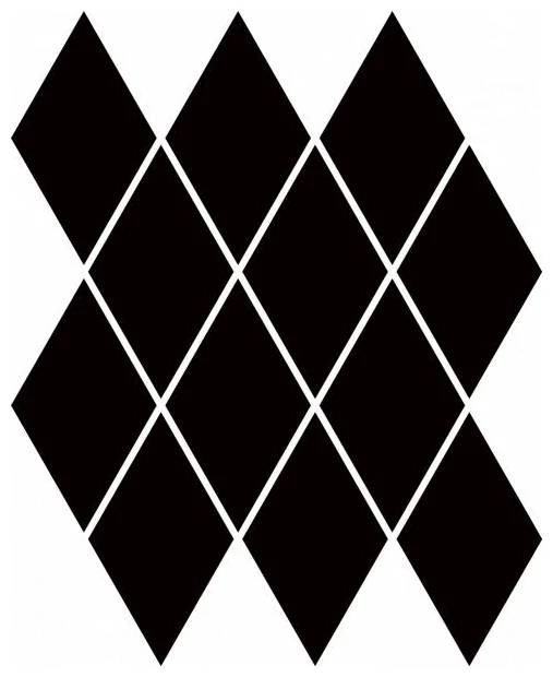Ten produkt to duża mozaika gresowa, wykonana w formie układu rombów o wymiarach pojedynczego elementu 20,6x23,7 cm. Układ geometryczny jest wyraźny i uporządkowany, co nadaje powierzchni nowoczesny, ale również prosty i estetyczny charakter. Czarna barwa rombów stanowi stonowaną bazę, która wprowadza do wnętrza kontrast i wyrazistość. To klasyczne połączenie formy i koloru może dopasować się do różnych aranżacji, zwłaszcza tych, gdzie liczy się wyraźna, ale nie przesadna dekoracja ściany czy podłogi.
