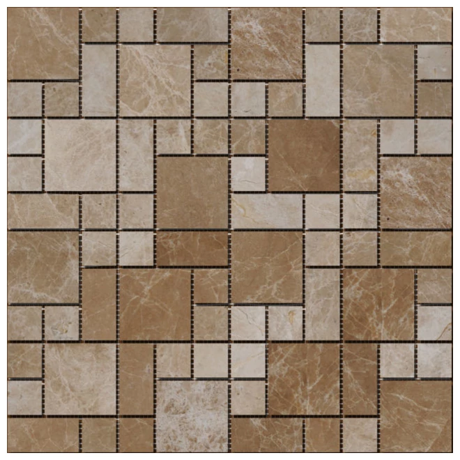 Mozaika Kamienna A-MST08-XX-028 30x30 od producenta Midas prezentuje się w stonowanej, naturalnej palecie brązów i beżów. Wzór to zestaw różnych rozmiarów prostokątów i kwadratów, ułożonych tak, by tworzyć interesującą, choć oszczędną kompozycję. Matowa powierzchnia kamienia podkreśla jego naturalny charakter, a jednocześnie eliminuje refleksy świetlne, co może być szczególnie ważne w przestrzeniach narażonych na silne oświetlenie.