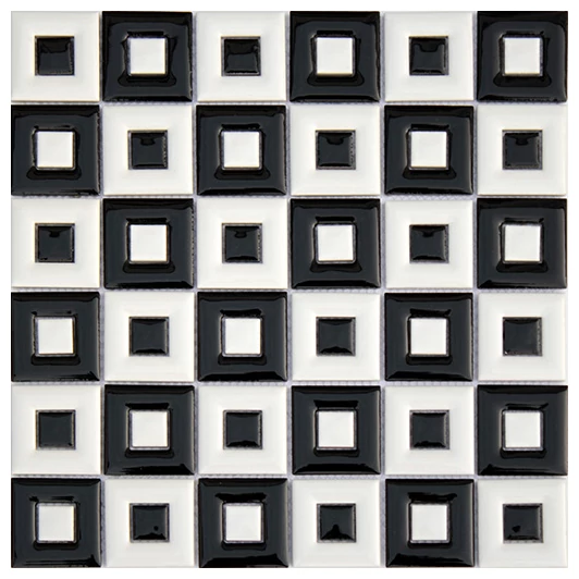Flash Black&,White mozaika Ceramiczna 30x30 (Mc-04) to propozycja dla tych, którzy szukają wyrazistego, jednocześnie klasycznego wzoru. Mocny kontrast między czernią a bielą jest dokładnie zaakcentowany dzięki powierzchni z wyraźnym połyskiem, który dodaje głębi i efektu strukturalnego. Nie jest to zwyczajna płaska mozaika - faktura, którą dostrzeżemy, decyduje o charakterze całej aranżacji.