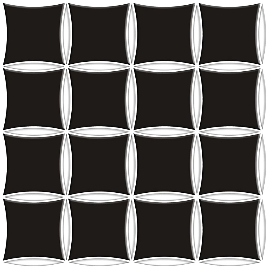Duża mozaika szklana A-MGL04-XX-031 o wymiarze 31,6x31,6 cm to propozycja dla osób szukających wyraźnej i konkretnie zarysowanej formy. Kafelki mają kształt kwadratów w kolorze głębokiej czerni z lekko wypukłymi bokami, które delikatnie łamią obraz, tworząc wyczuwalną przestrzeń między poszczególnymi elementami. Ta przestrzeń, w białym odcieniu, kontrastuje z czernią i wyraźnie zarysowuje kontury, podkreślając geometryczny porządek.