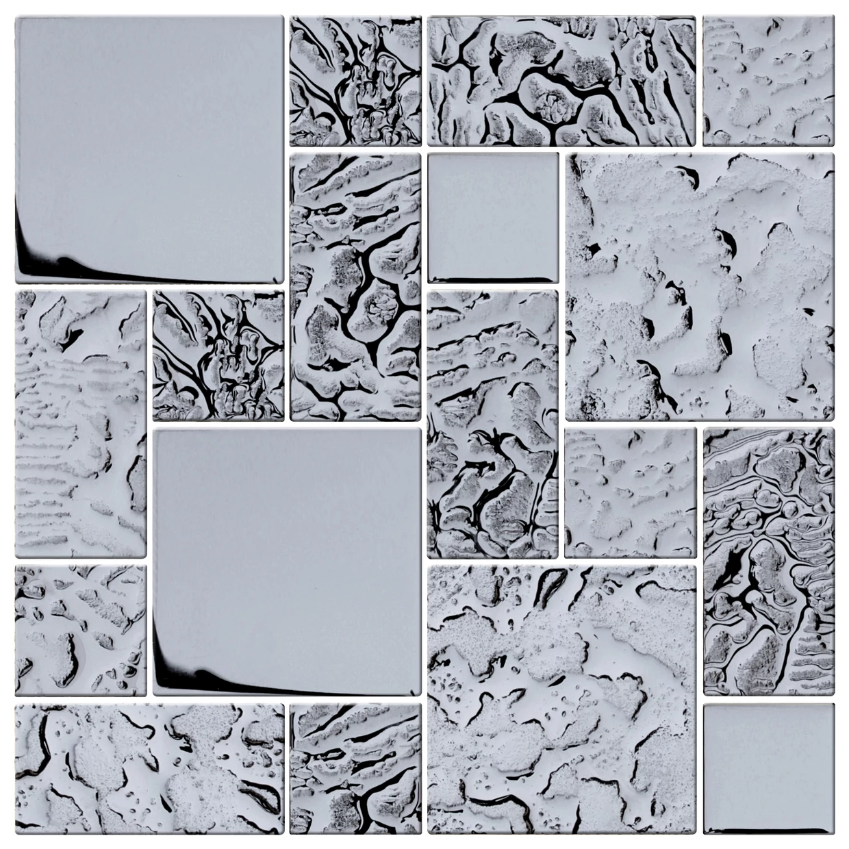 Mozaika Szklana A-MGL06-XX-009 30x30 od producenta Midas to produkt o wyraźnej strukturze i zróżnicowanym wzorze. Jej powierzchnia błyszcząca zyskuje dodatkowy wymiar dzięki ciekawym, nieregularnym fakturom. Wzory na poszczególnych elementach łączą obszary gładkie z tłoczonymi - co daje efekt przestrzenności, choć cały zestaw utrzymany jest w jednej, spójnej tonacji kolorystycznej. To nie jest gładki, jednolity materiał - tutaj można wyczuć różnorodność, która nie przeszkadza, a wręcz pozwala na budowanie interesującej kompozycji ściennej.