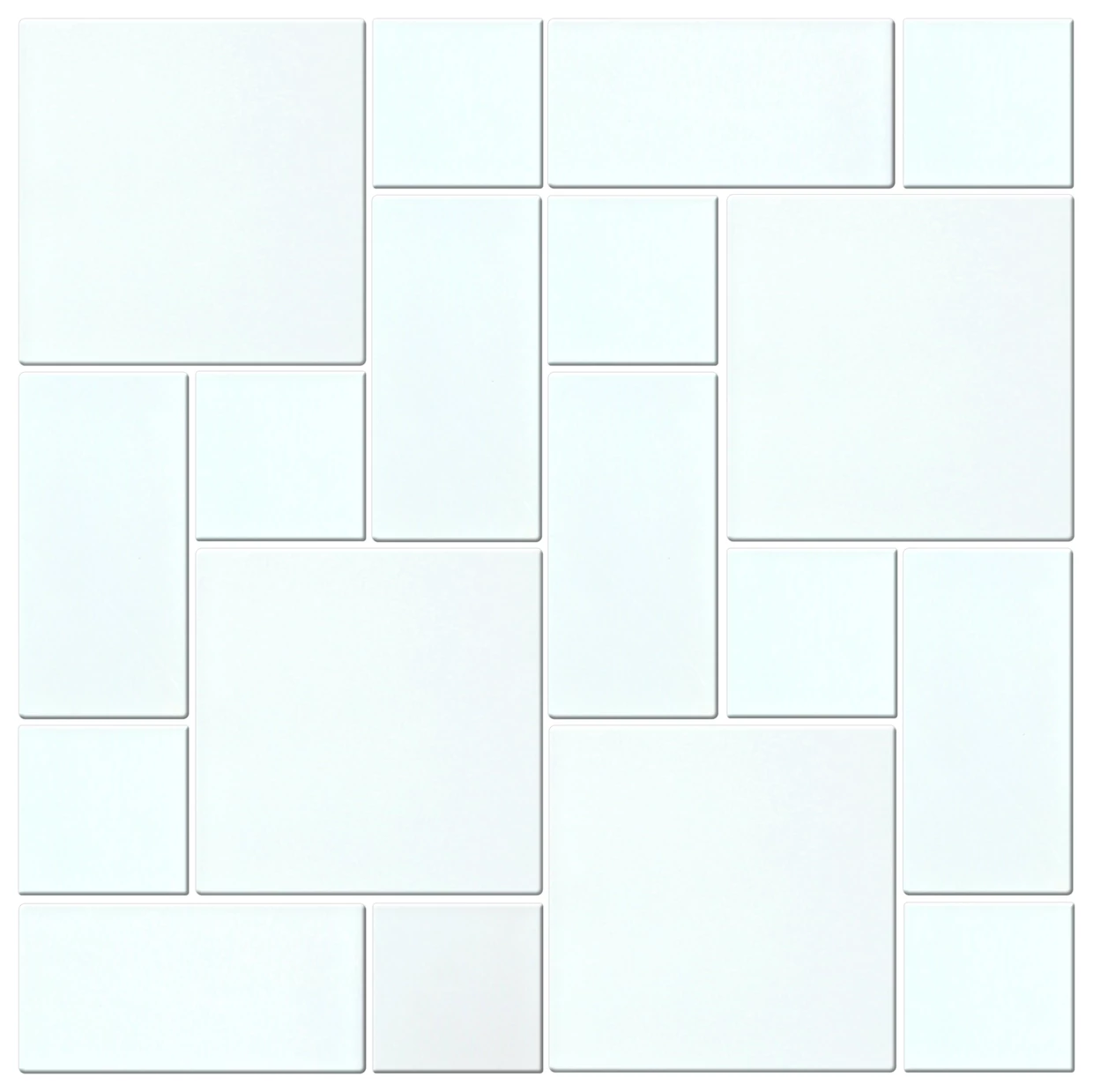 Mozaika szklana A-MGL06-XX-019 od producenta Midas prezentuje się niezwykle minimalistycznie, a jednocześnie funkcjonalnie. Kompozycja dużych i mniejszych prostokątów oraz kwadratów tworzy układ, który nie narzuca się wzorem ani kolorem, lecz pozwala na swobodę aranżacji w przestrzeni. Powierzchnia o satynowym wykończeniu eliminuje zbędny połysk, przez co mozaika zachowuje subtelną, delikatną fakturę.