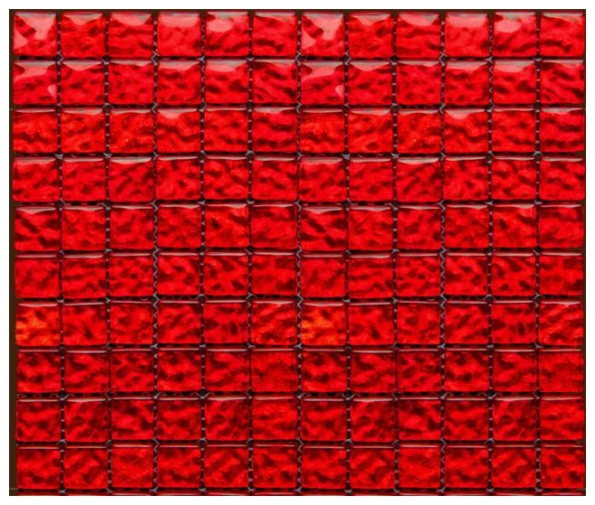 Wielkość mozaiki to dodatkowa zaleta - duża powierzchnia pojedynczej płytki pozwala na energooszczędniejszą pracę podczas jej układania. W połączeniu z intensywnym czerwonym odcieniem daje to efekt, jaki trudno byłoby uzyskać z mniejszych elementów, a jednocześnie mniej fug oznacza mniej miejsc, gdzie może się gromadzić brud.