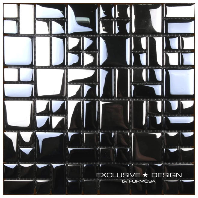 Mozaika Szklana A-MGL08-XX-016 to przykład dużej mozaiki o powierzchni błyszczącej, która zwraca uwagę intensywnym połyskiem czarnej barwy. Powierzchnia jest wyraźnie refleksyjna, co wpływa na sposób, w jaki światło odbija się od niewielkich, lecz zróżnicowanych w kształcie i wymiarze segmentów. Duża mozaika szklana kuchenna i łazienkowa prezentuje się nowocześnie i dynamicznie, a jej geometryczny układ nie jest regularny - to raczej zestaw fragmentów o różnorodnych formach, które razem tworzą ciekawą, choć niejednorodną przestrzeń.