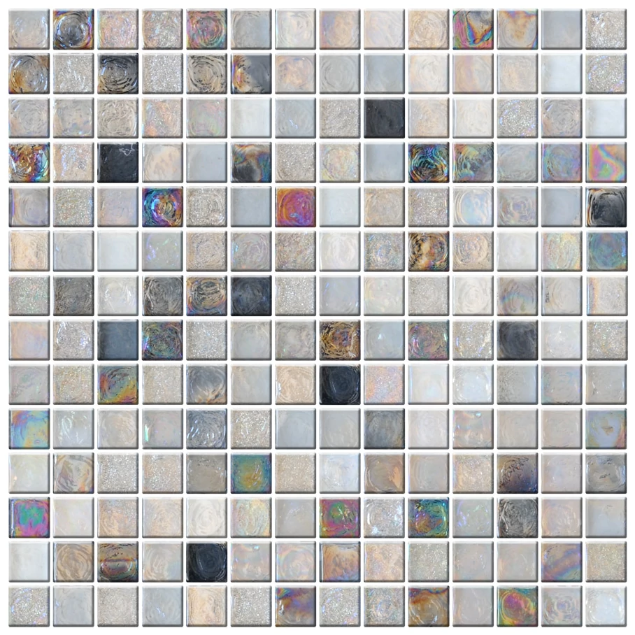 Mozaika Szklana A-MGL08-XX-044 od Midas wyróżnia się różnorodnością powierzchni i odcieni. Poszczególne kwadraty mają około 30x30 mm, co nadaje całości dużą skalę i pozwala na ciekawą kompozycję wizualną. Szeroka gama barw, od bieli, przez beże i szarości, aż po ciemniejsze akcenty tworzy spójny, ale niejednolity motyw.