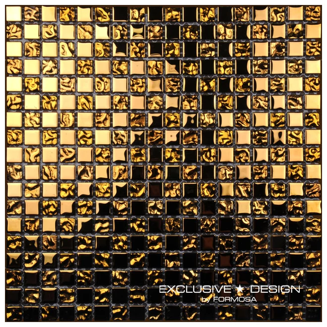 Mozaika Szklana A-MGL04-XX-004 od producenta Midas to przykład dużego formatu mozaiki szklanej o powierzchni błyszczącej, która zwraca uwagę wyrazistą kolorystyką. Połączenie intensywnych czerni i złota tworzy harmonijną, choć niebanalną kompozycję. Wzory na poszczególnych kafelkach różnią się fakturą - niektóre są gładkie, błyszczące, inne mają lekko nieregularną powierzchnię z dodatkowym połyskiem metalu. To właśnie ta nierówność detali podkreśla charakter całej mozaiki i sprawia, że można ją łatwo zauważyć w przestrzeni.