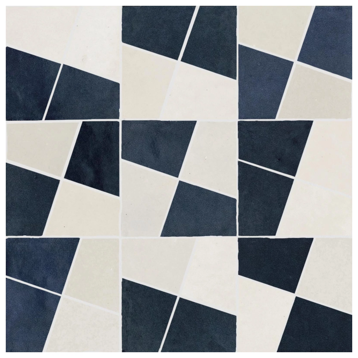Ta mozaika o wymiarach 30x30 cm to wyraz precyzji i prostoty w projekcie. Kolorystyka opiera się na kontrastujących odcieniach granatu i bieli, co daje ciekawy efekt wizualny, nie przesadzony, ale zauważalny. Każdy element ma nieregularny kształt, co nadaje powierzchni mozaiki nieco surowej, geometrycznej struktury. Taka forma pozwala na stworzenie wnętrza z charakterem, które nie wymaga wielu dodatków, by wyglądać interesująco.