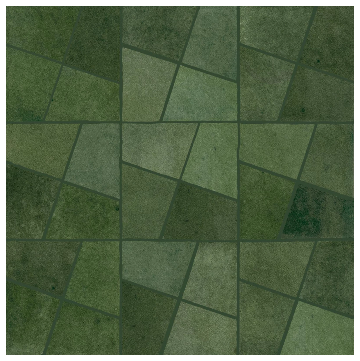 Zellige Bosco LUX M8WF to mozaika o nieregularnym, geometrycznym układzie elementów, które tworzą niepowtarzalny wzór. Dominują różne odcienie zieleni, które mają matową, lekko fakturowaną powierzchnię, co dodaje jej naturalnego charakteru. Błyszcząca glazura podkreśla wyrazistość poszczególnych kafelków i ich nasycenie barwą. Taka mozaika przyciąga wzrok, nie jest monotonna, a jednocześnie nie szokuje - raczej budzi ciekawość i chęć bliższego poznania.